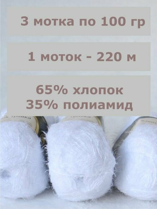10 цен на Пряжа Хлопок травка от Камтекс, цвет Белый 205, 3 шт*100 г/220 м