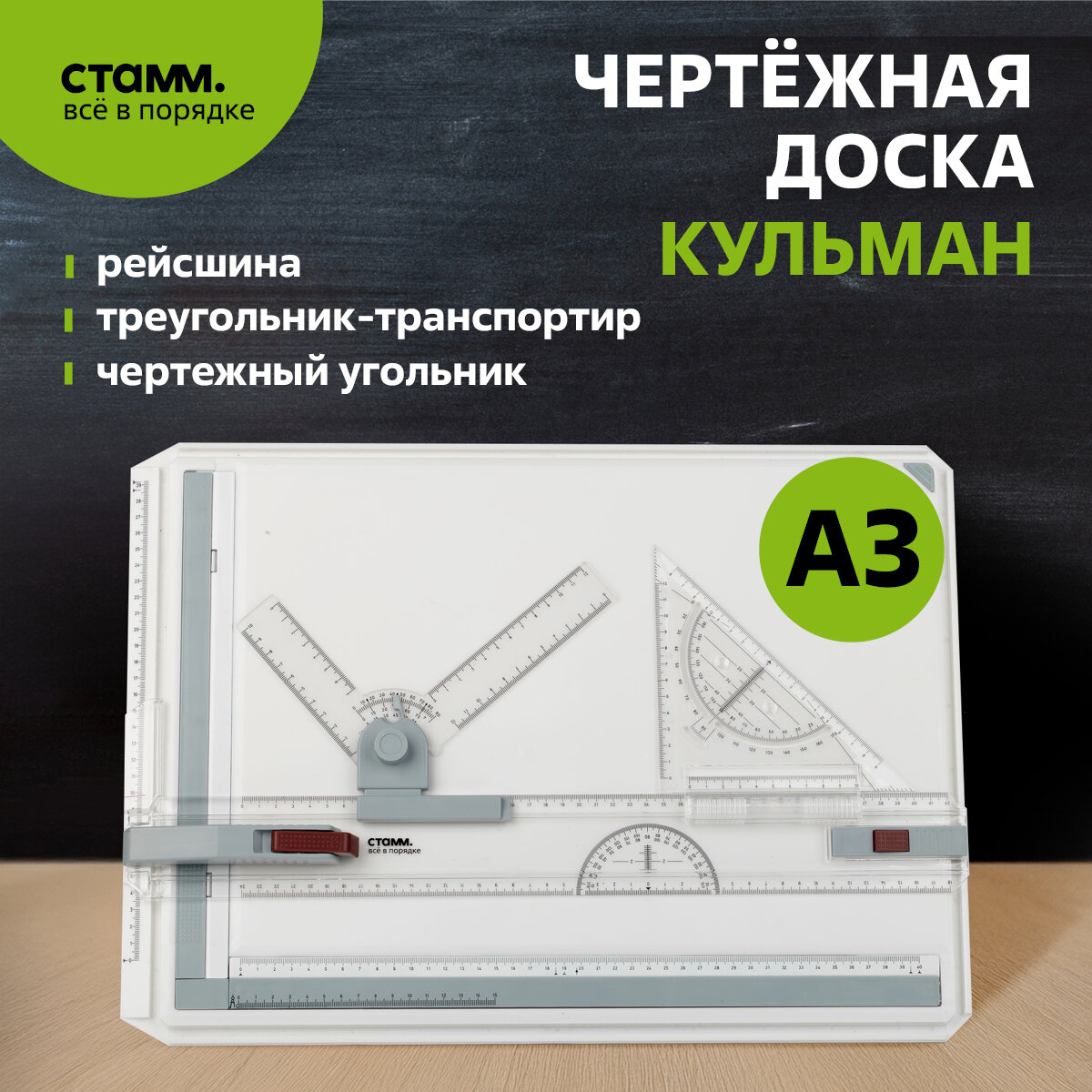 Отзывы на Доска чертежная (кульман) А3 СТАММ, размер 505*370 мм., пластик