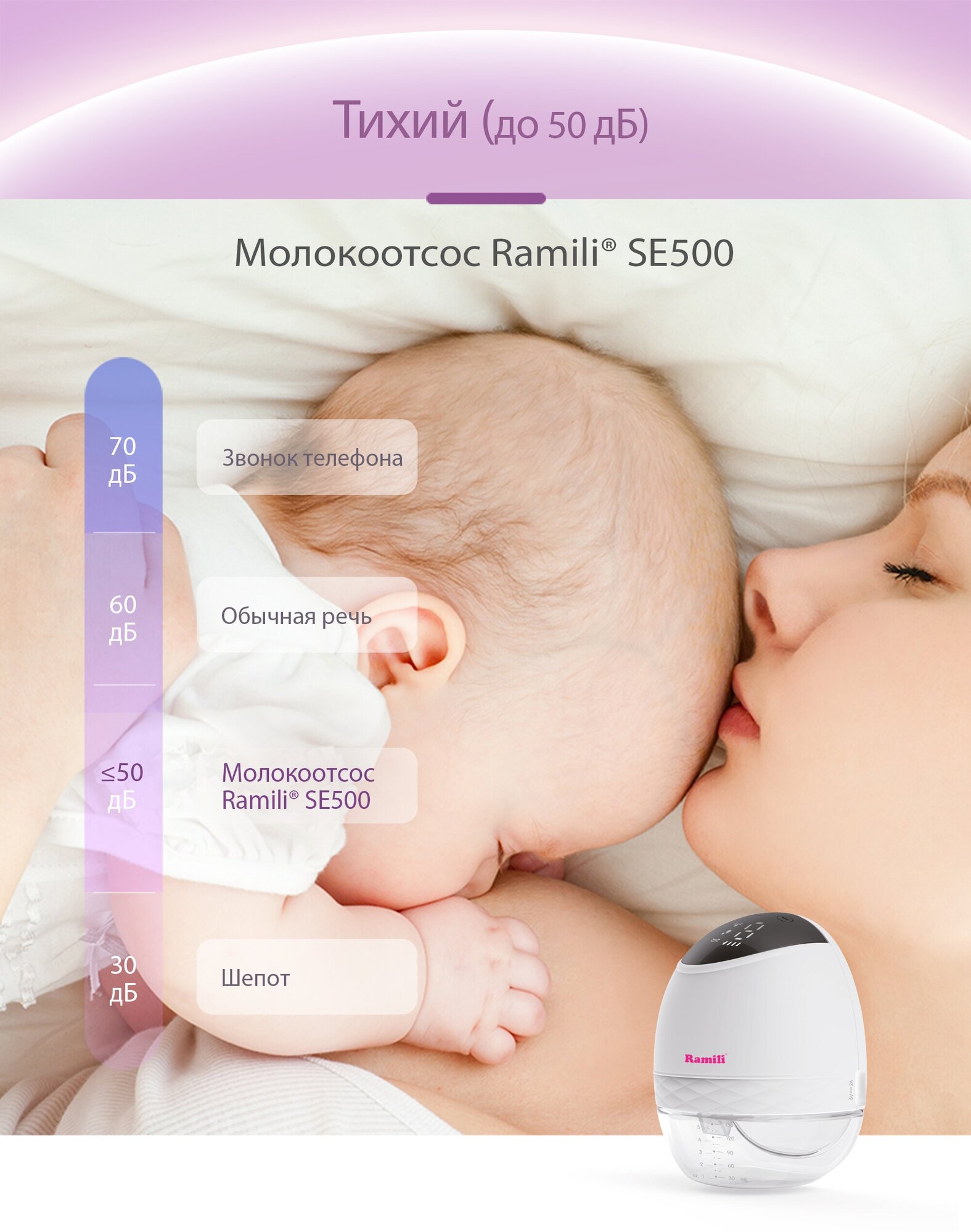 Электрический молокоотсос Ramili SE500 Двухфазный 2-в-1 под бюстгальтер 7 480 ₽