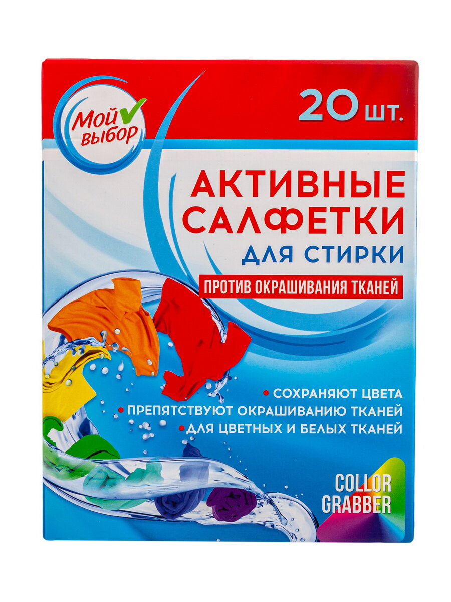 Активные салфетки для стирки "Мой выбор", для разноцветных тканей, 20 шт