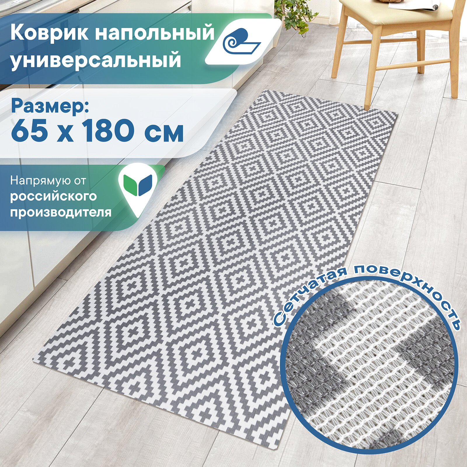 Отзывы на Коврик дорожка напольный VILINA противоскользящий мягкий в прихожую в комнату в коридор на кухню 65х180 см "Элемент" серый темные ромбы