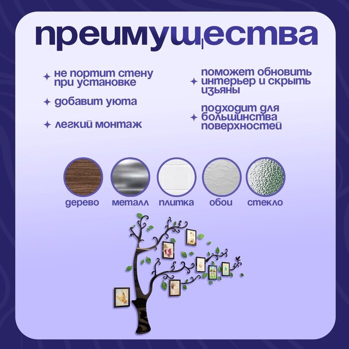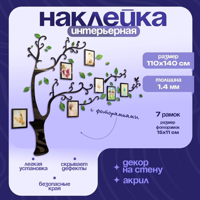 Отзывы на Наклейки интерьерные с фоторамками"Семейное дерево", декор на стену, панно 110 х 140 см TAKE IT EASY .
