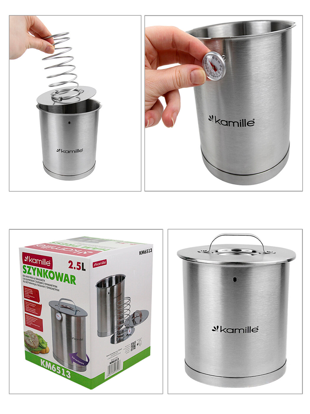Ветчинница 2,5 л. из нержавеющей стали Kamille KM-6513 с термометром (2,5 л. / серебристый) информация: