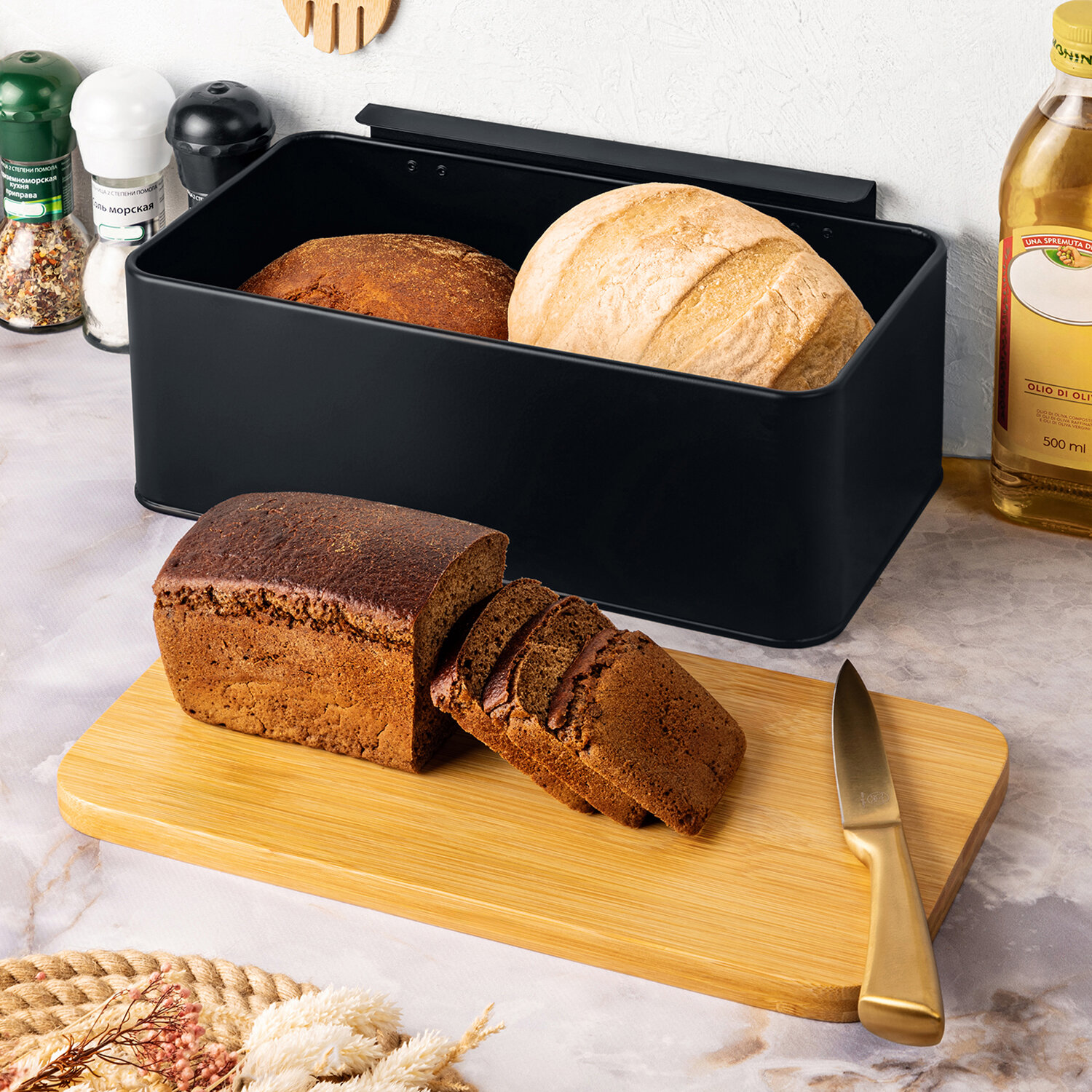 Хлебница Elan Gallery "Черная" 33*13*18 см с бамбуковой крышкой-доской 32,8*17,8*1,5 см, металл/бамбук (240318 Elan) информация: