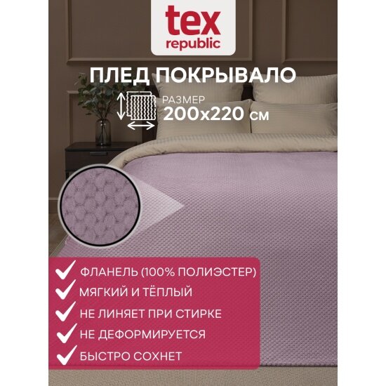 Плед Texrepublic Deco фланель, 200х220 сиреневый (93416) информация: