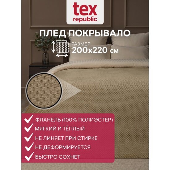 Плед Texrepublic Deco фланель, 200х220 шампань (93410) 1 400 ₽