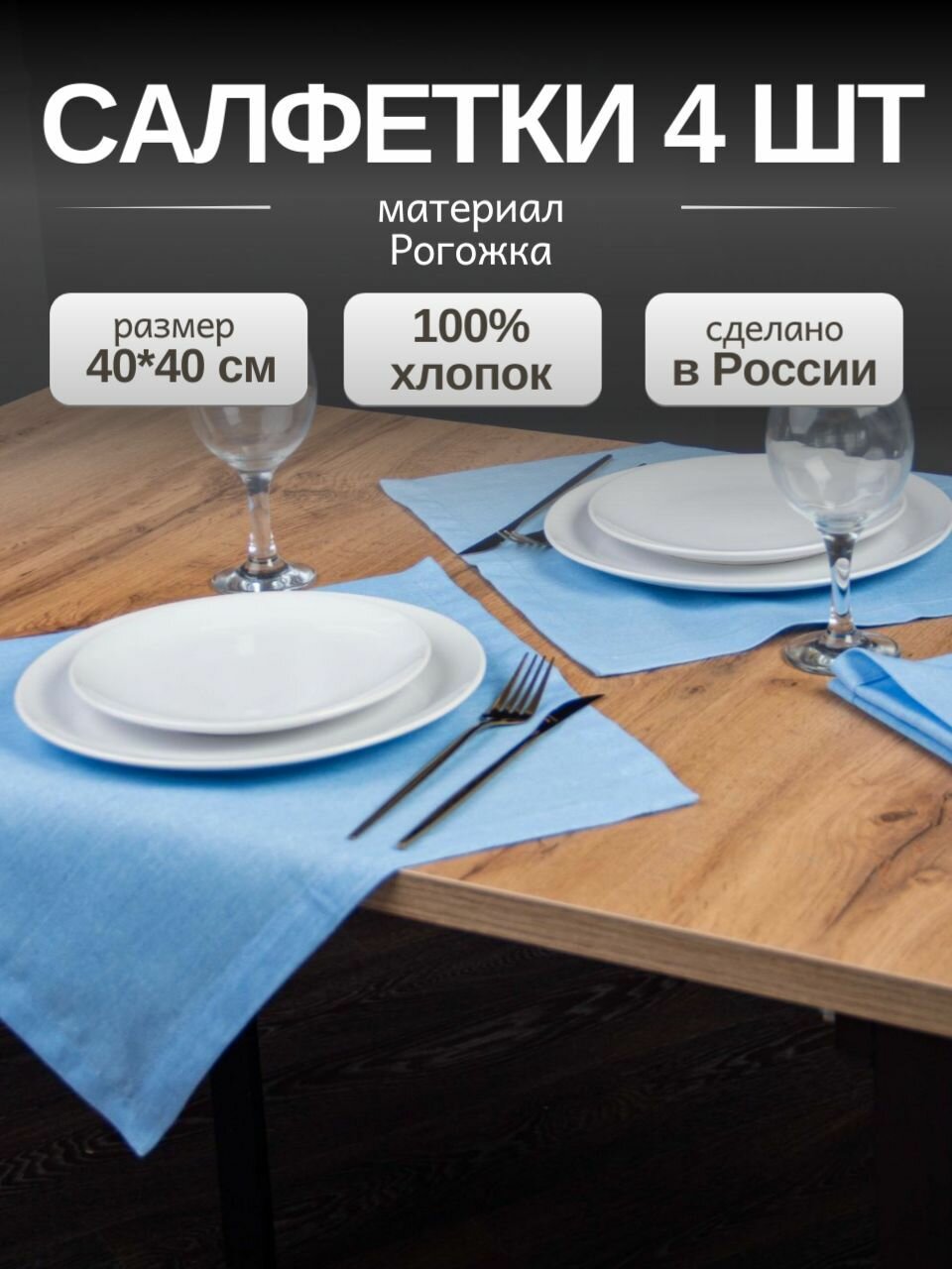 Салфетки на стол сервировочные, квадратные / Набор сервировочных тканевых салфеток для украшения стол LeoHome 40х40 см, 4 шт, голубые, хлопок 100% 700 ₽
