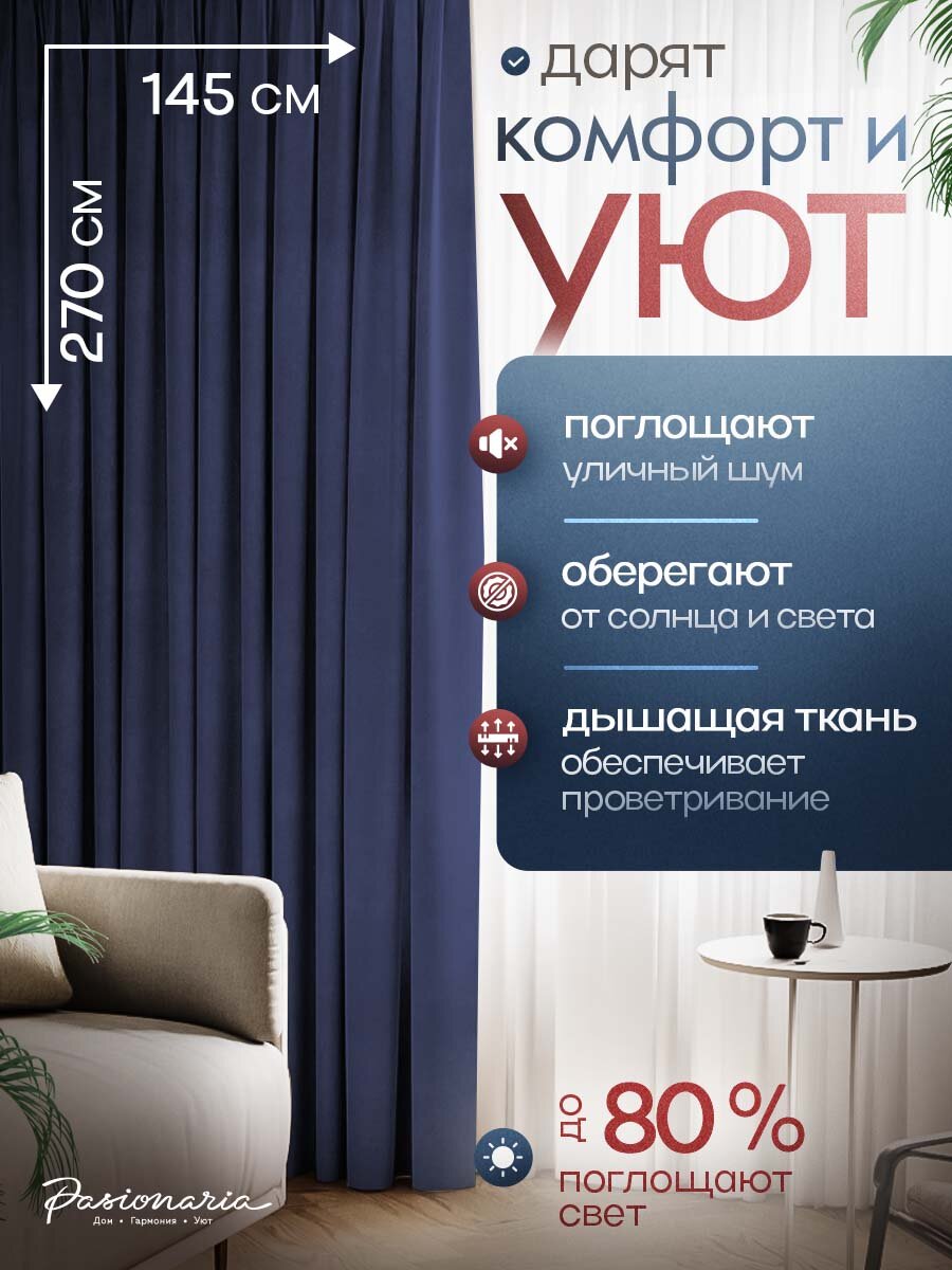 Комплект штор PASIONARIA "Тина Синий" на шторной ленте, 200х270 см - 2 шт.