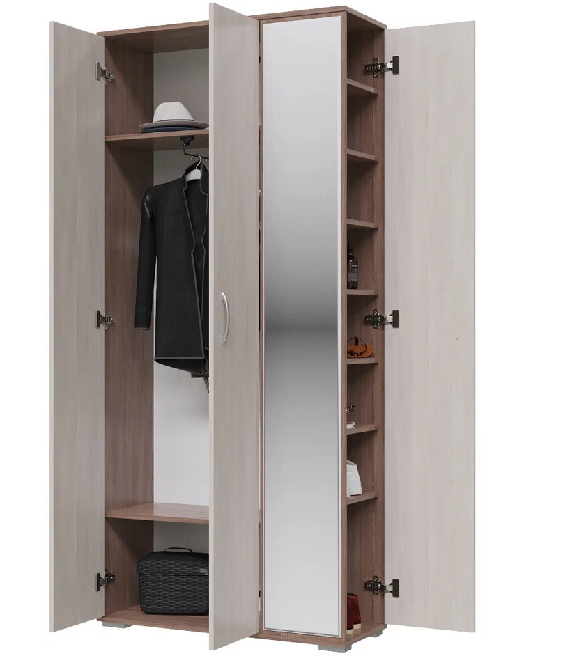 Прихожая комплект САША-6 (правая) от Фант-Мебель, с зеркалом, с обувницей, шкафом и ящиками, 156x203,6x43 см. Ясень темный/Ясень светлый