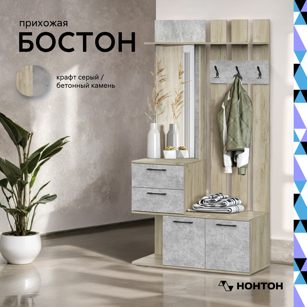 10 цен на Прихожая с зеркалом Нонтон Бостон дуб крафт серый / бетонный камень 110x45x212 см