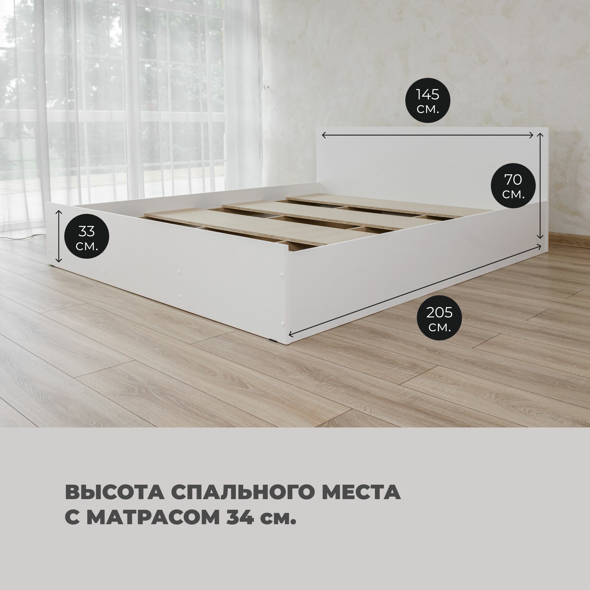 Двуспальная кровать Милена с матрасом Лайт, 140х200 см информация: