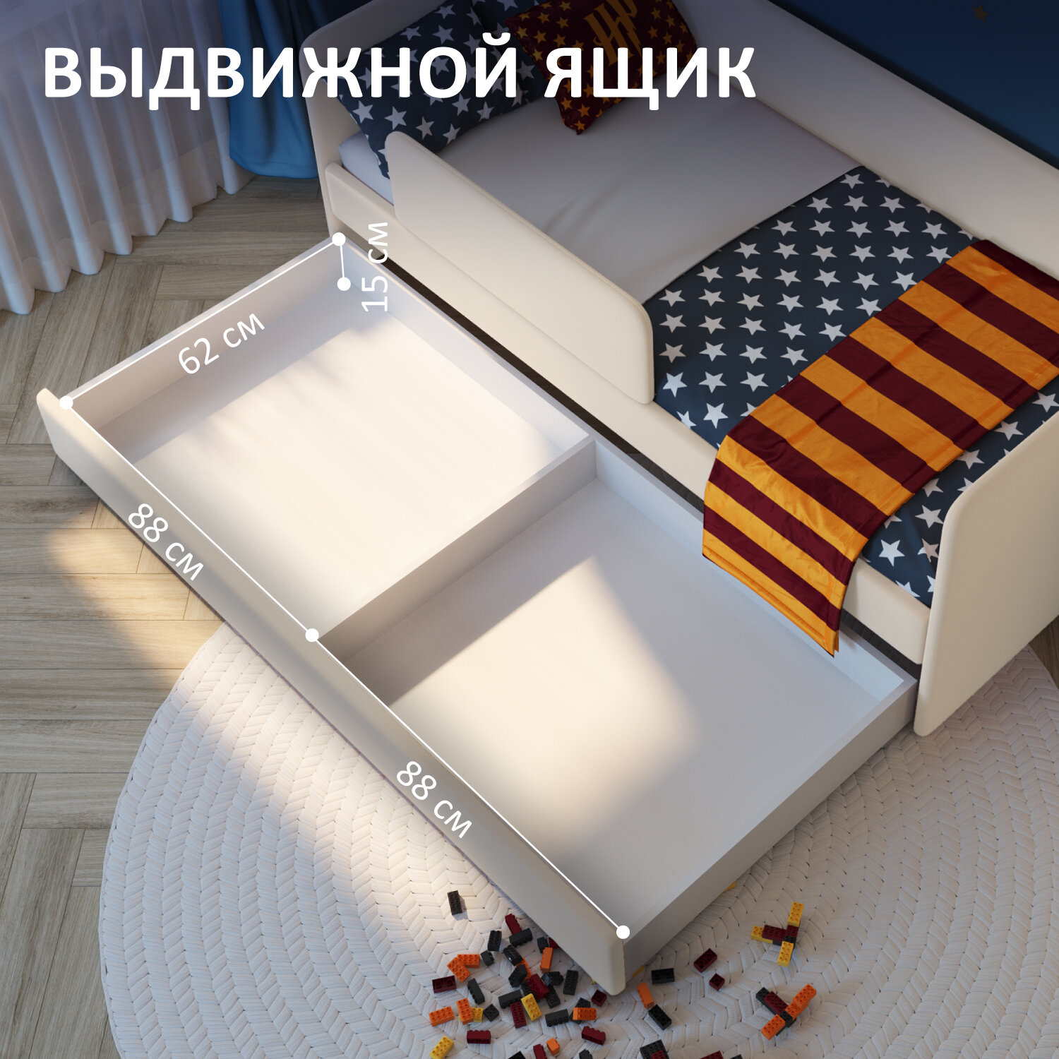 | Особенности | для детей, мягкое изголовье, основание под матрас, с бортиком, с изножьем, с ящиком для белья, усиленная конструкция |