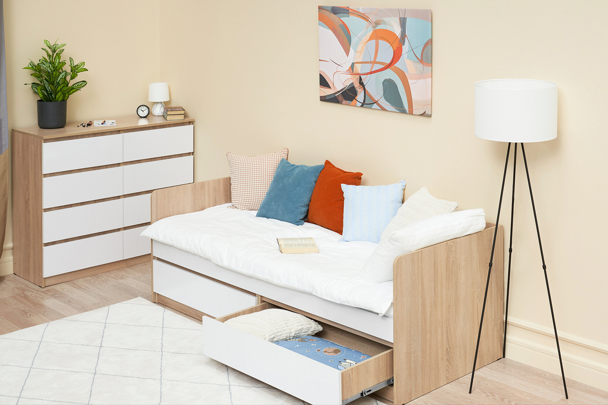 10 цен на Кровать детская с ящиками Нонтон Челси, 80*200 см, сонома / белый глянец