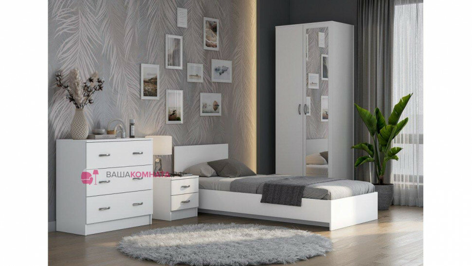 1 шт мс для спальни Ронда КР-080 (без основания) белое дерево/белое дерево + 1 шт мс для спальни Ронда основание КР-080 ЛДСП белый (Интерьер-Центр)