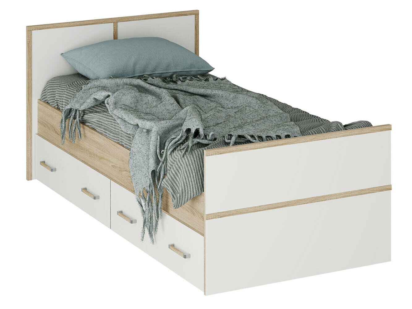 Кровать односпальная Сакура 90х200 см, с ящиками, основание настил, с изножьем, со спинкой, Дуб Сонома / Белый 10 300 ₽