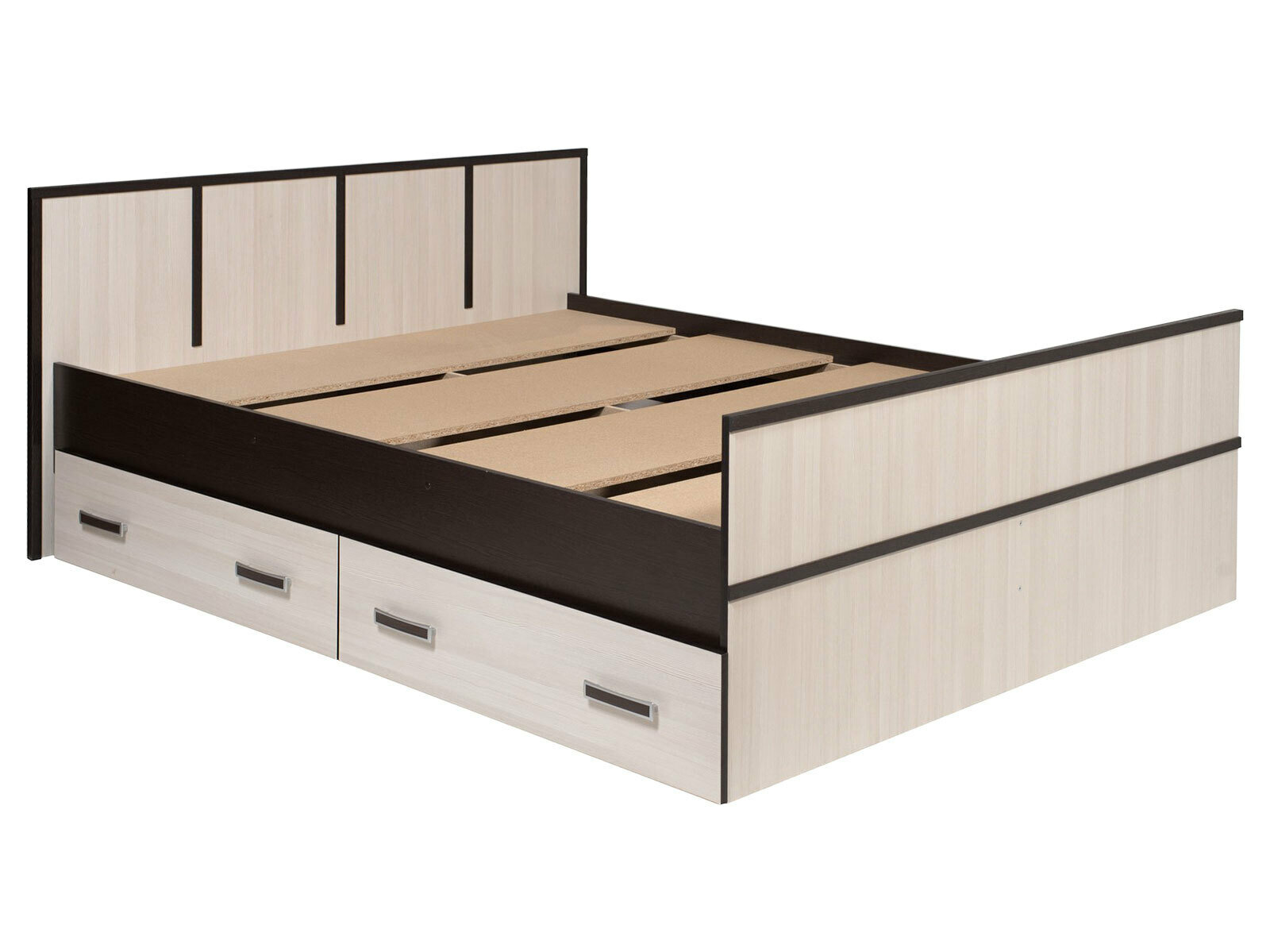 Двуспальная кровать Сакура 160х200 см, с ящиками, с изножьем, со спинкой, с реечным основанием, Венге / Лоредо информация: