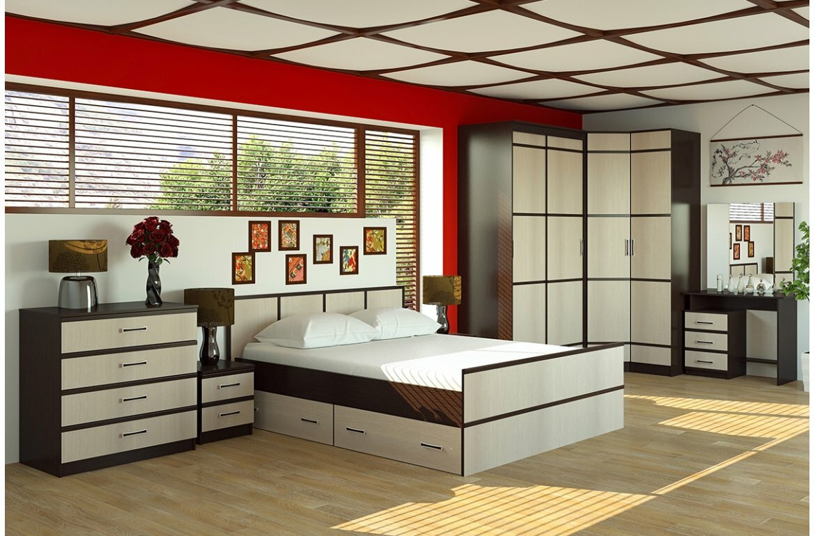 Двуспальная кровать с ящиками Сакура Венге / Лоредо 140х200 см
