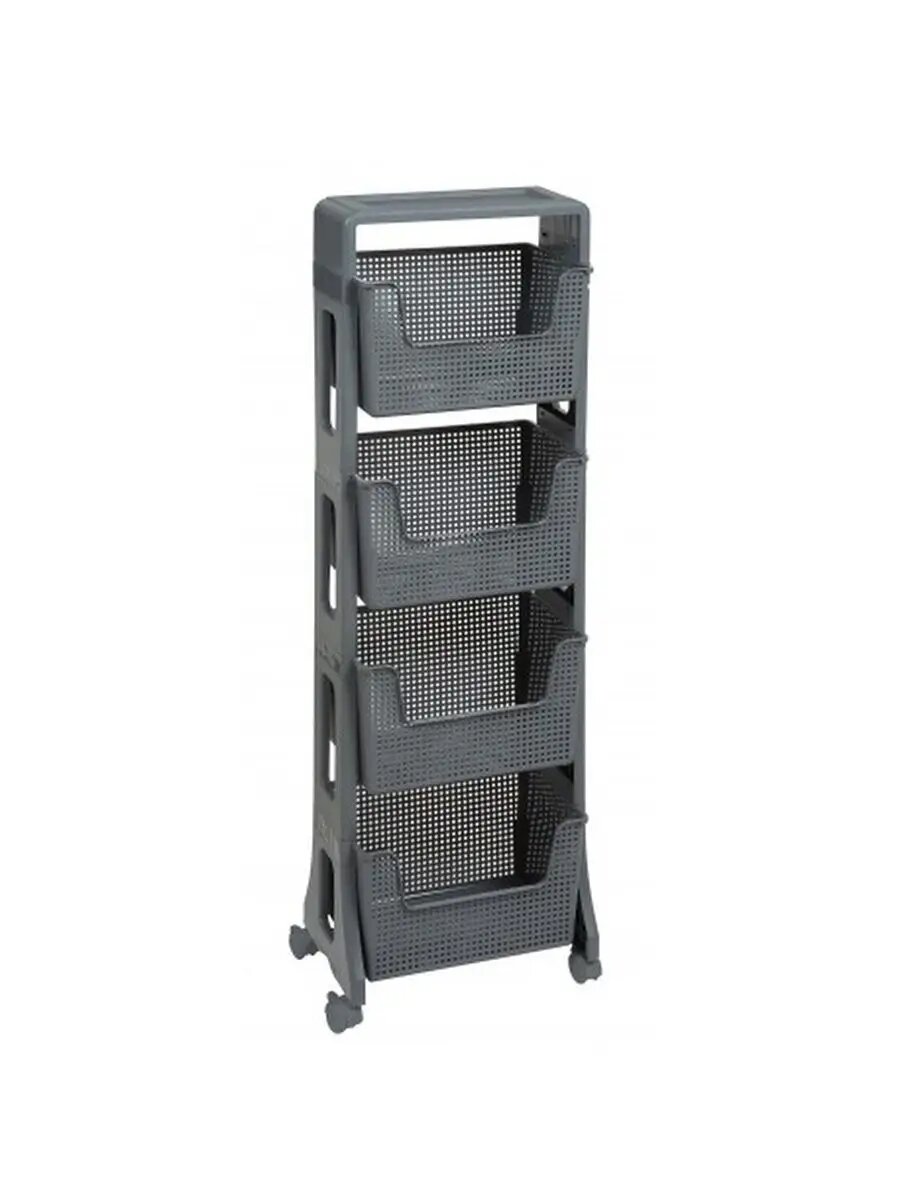 10 цен на Этажерка на колесиках Лофт 4 яруса, цвет серый / напольный органайзер для хранения на кухне, в ванной