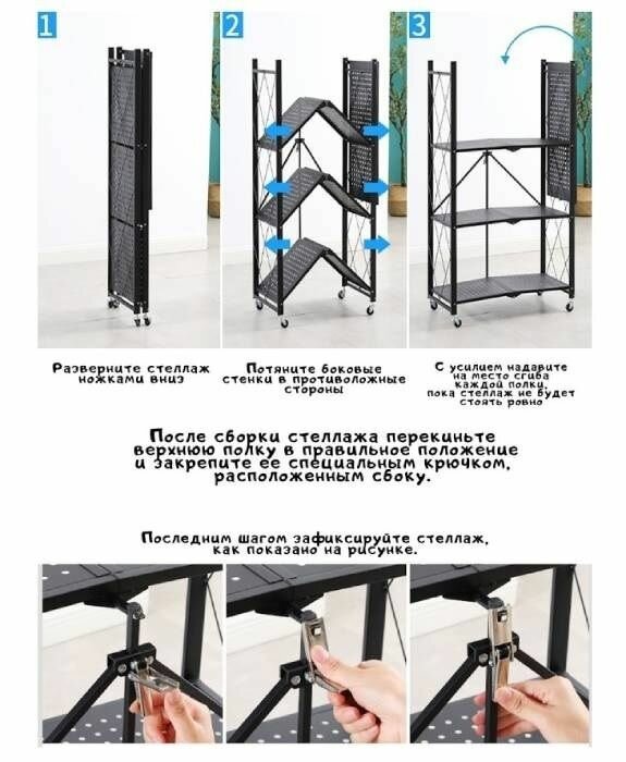 Металлический стеллаж складной на колесиках, LettBrin, 73 х 40 х 126.5 см, 4 яруса, черный 6 147 ₽