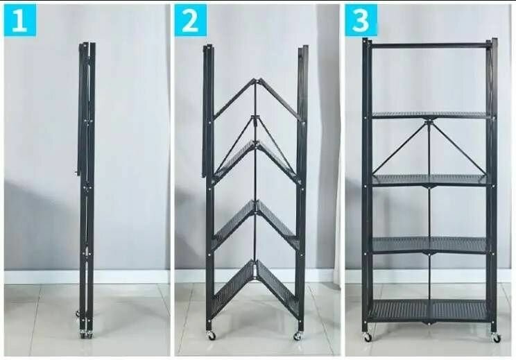 Отзывы на Этажерка на колесиках металлическая (5 полок) / Складной металлический стеллаж, LettBrin, 73 х 40 х 160 см, 5 ярусов, черный