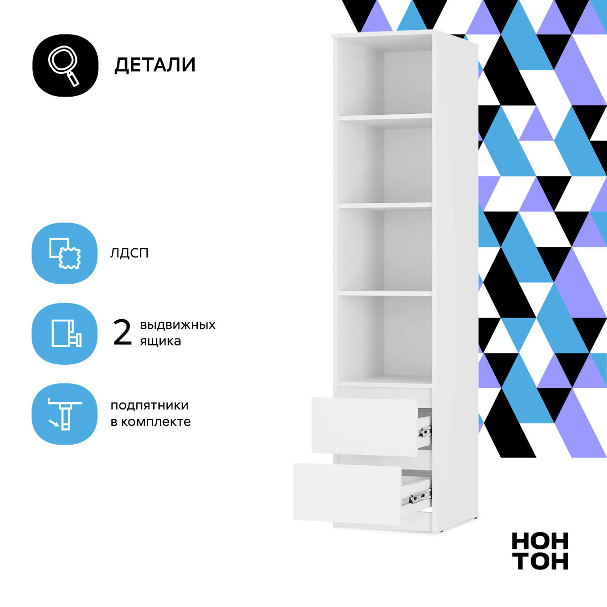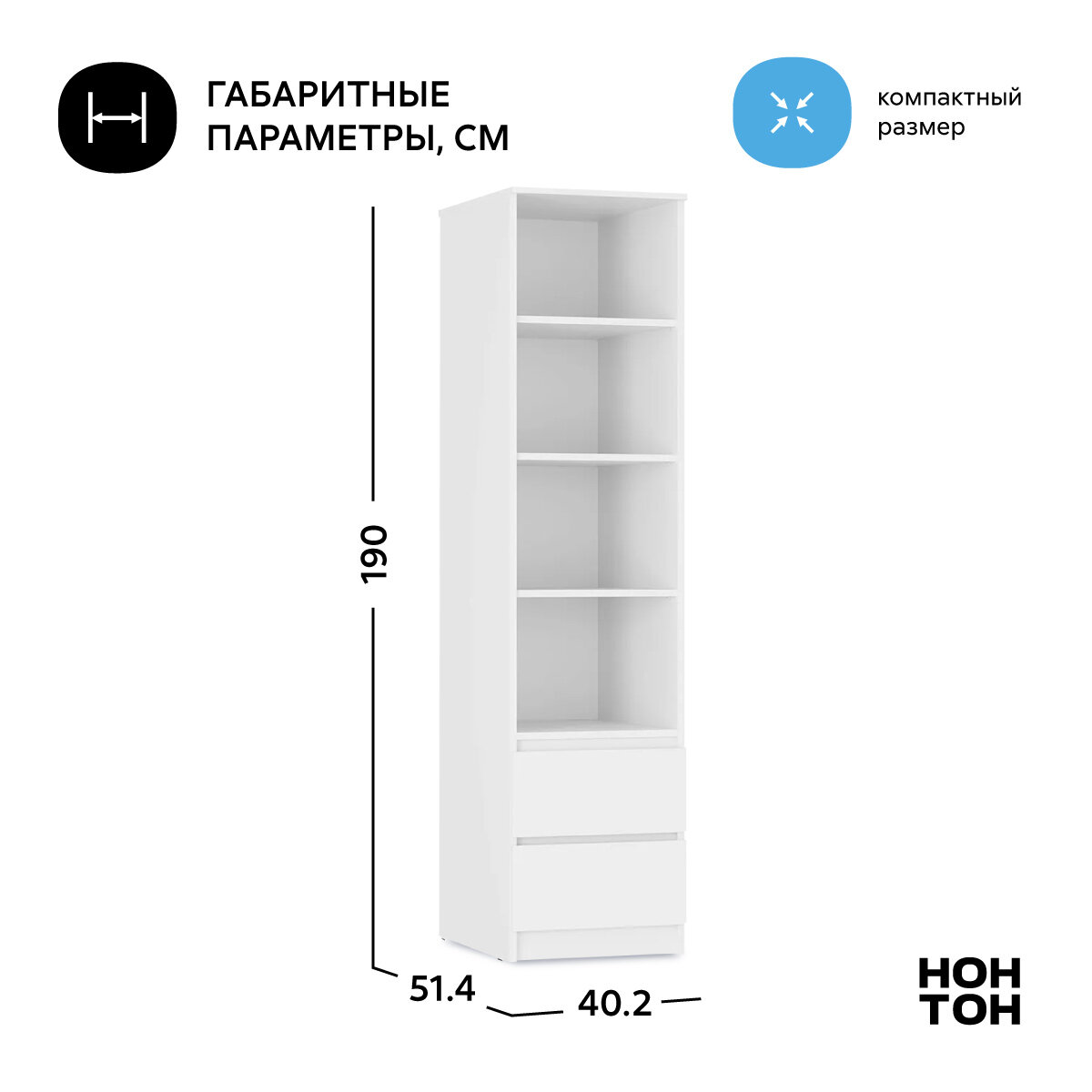 Стеллаж для книг с ящиками Нонтон Симпл белый, 40 см информация: