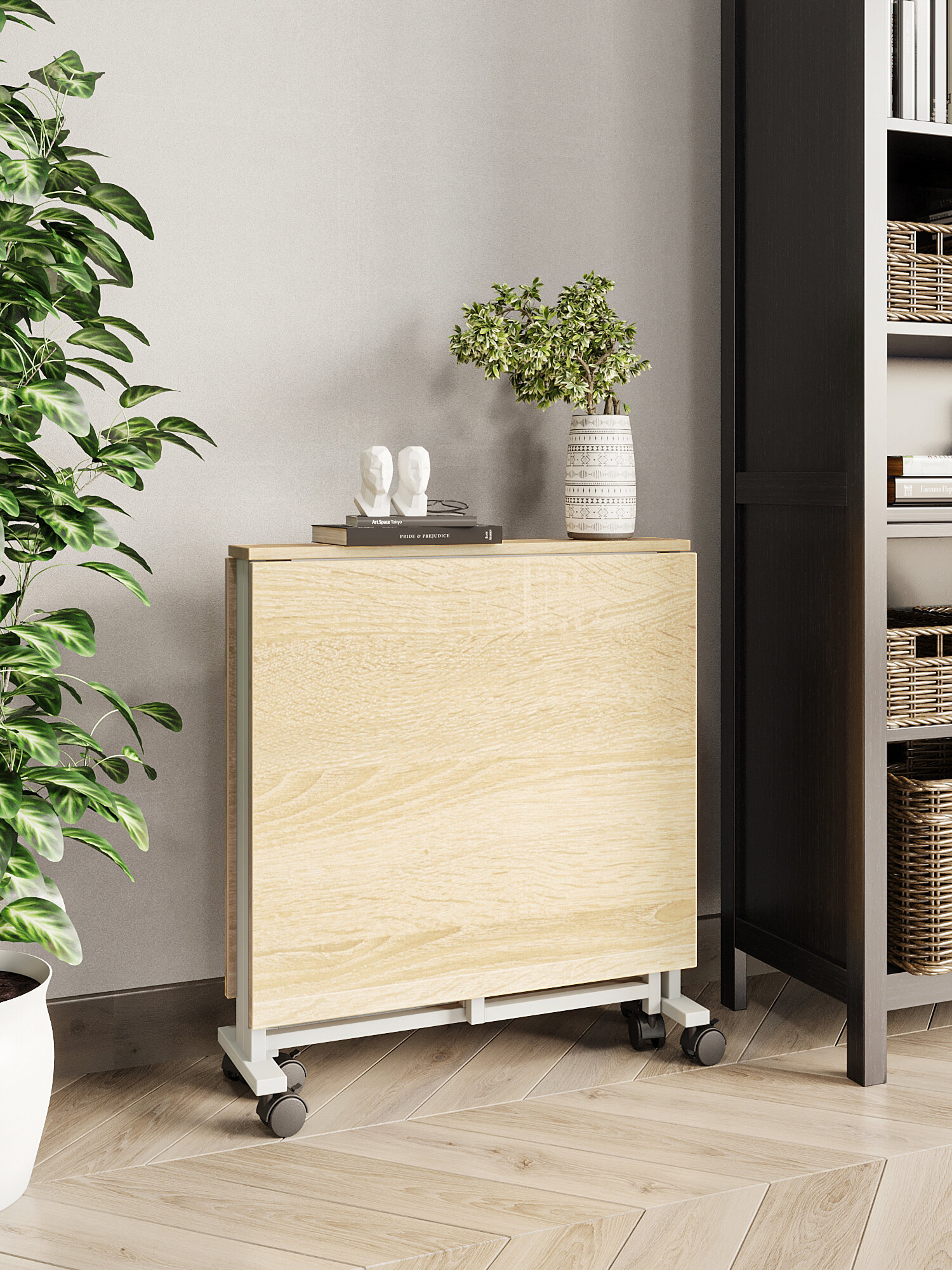 Стол-книжка для кухни и гостиной раскладной узкий компактный KM LOFT белый/сонома информация: