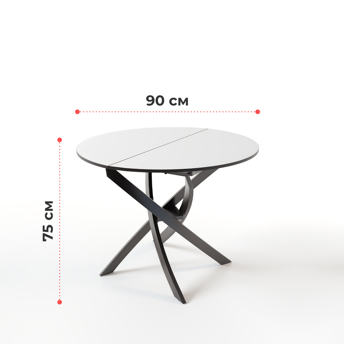 Стол круглый обеденный Lerosco, раздвижной, белый матовый, 90(120)х90х75 см информация:
