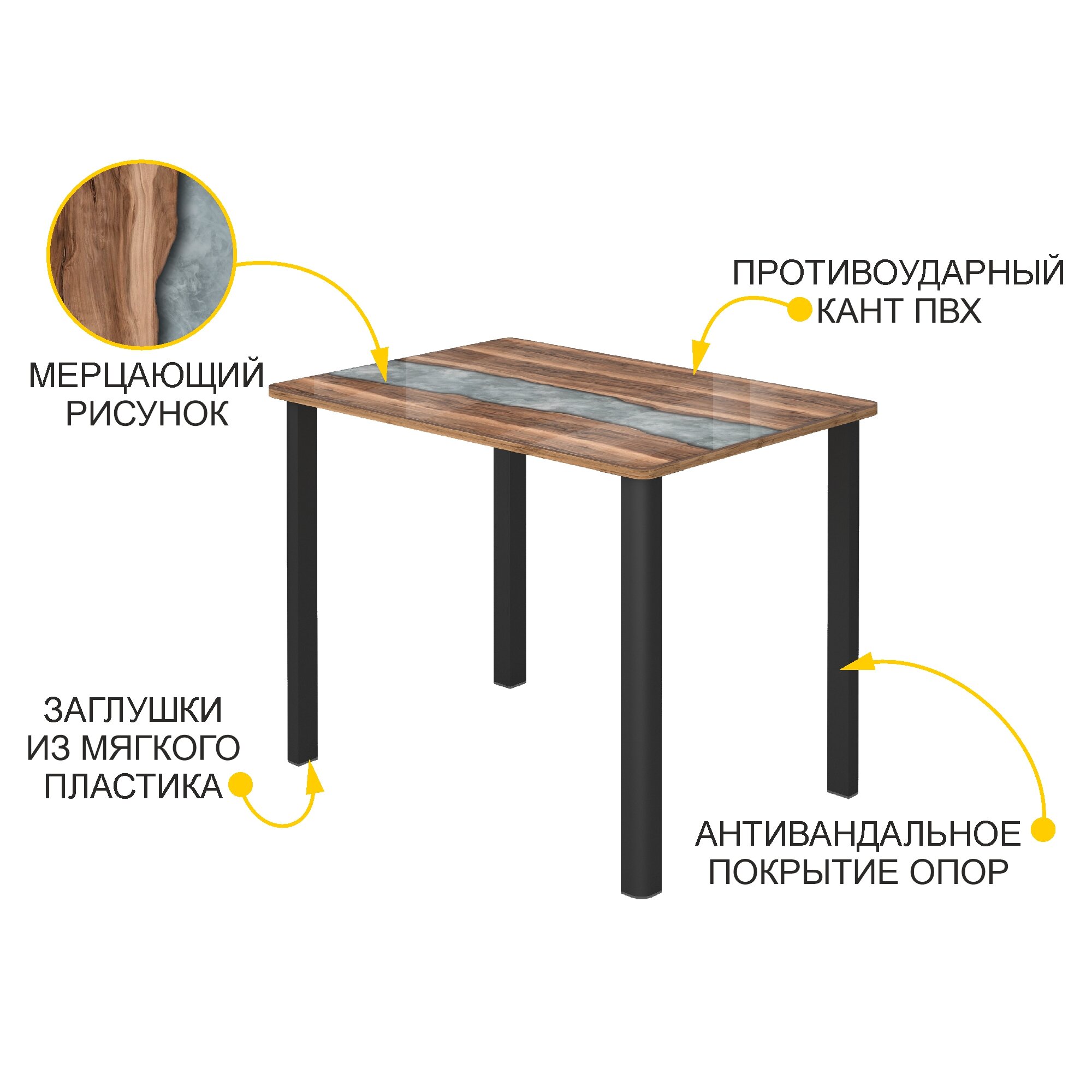 Стол обеденный Парма 17 (03) Река серебристая/Черный, 100х70х74 см информация: