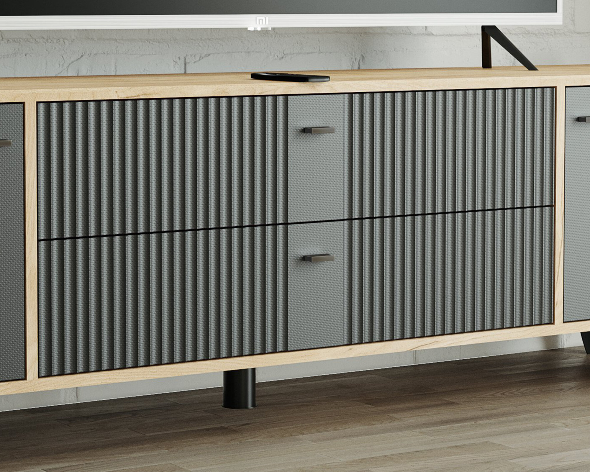 Тумба под телевизор Нонтон Грейс, графит серый / дуб крафт золотой, 200.1x34.6x35.5 см