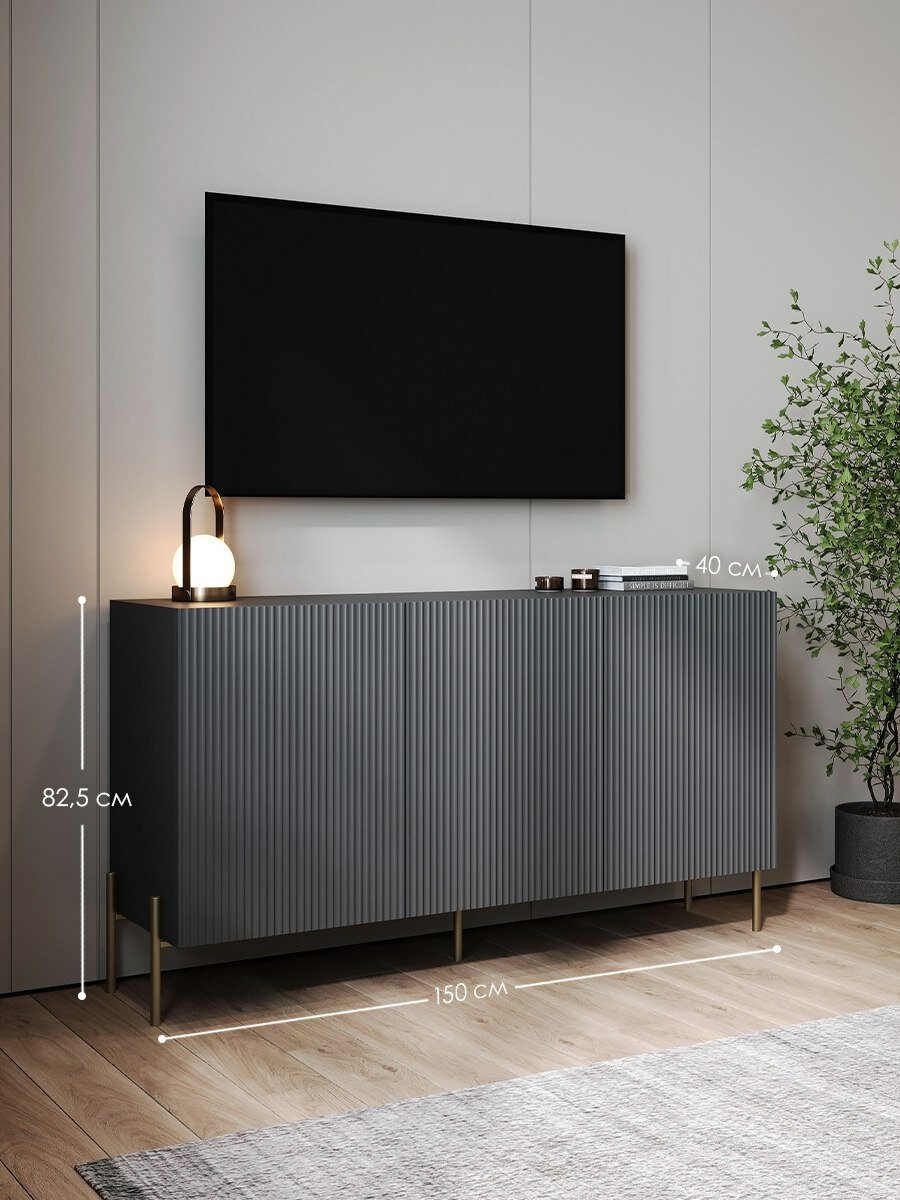 Комод для одежды и хранения вещей Puzzlemebel, напольный на ножках, серый графит 150 см информация: