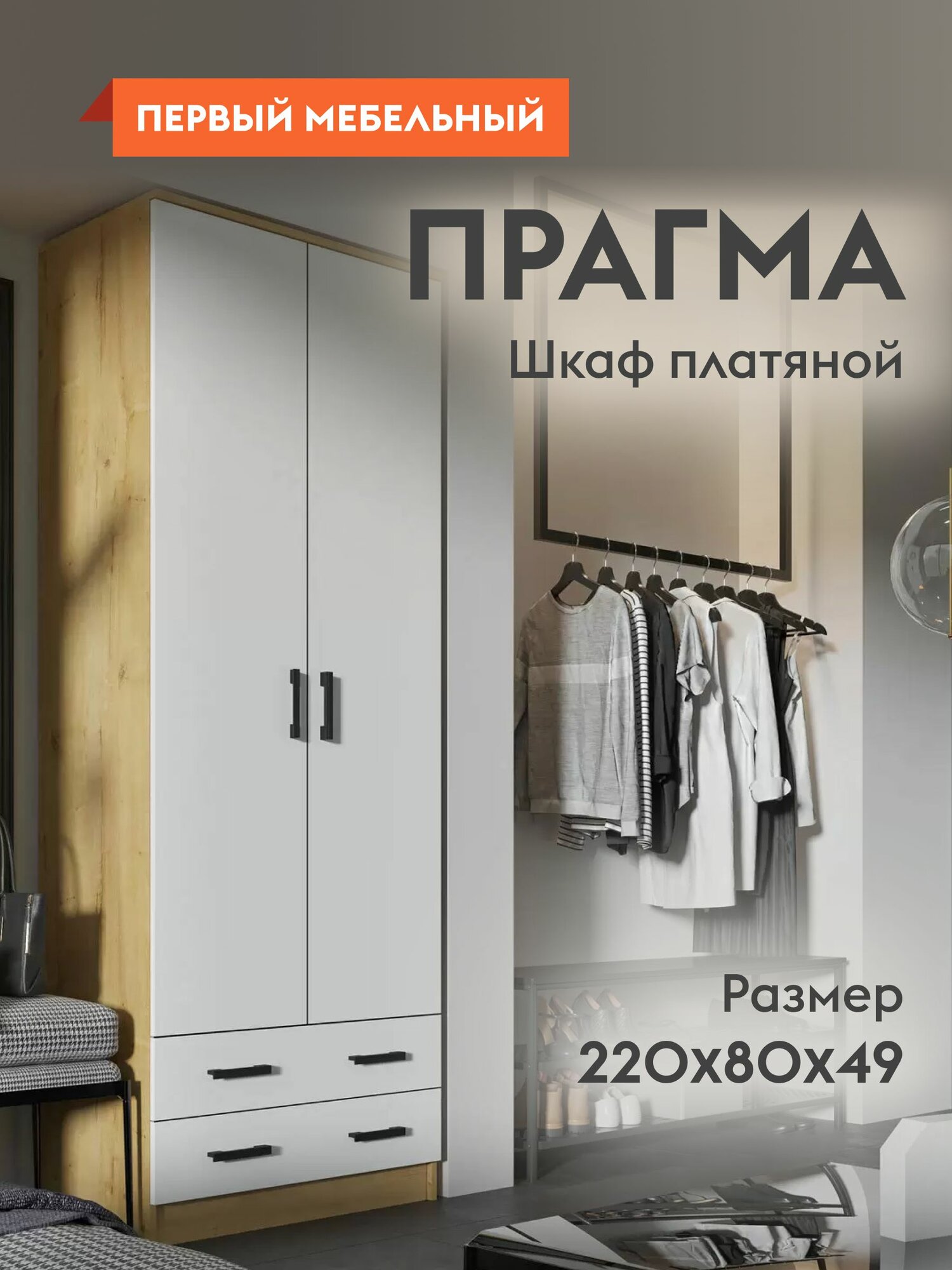Шкаф ЭРА "Прагма", распашной, ЛДСП, 80 см x 48,7 см x 220см информация: