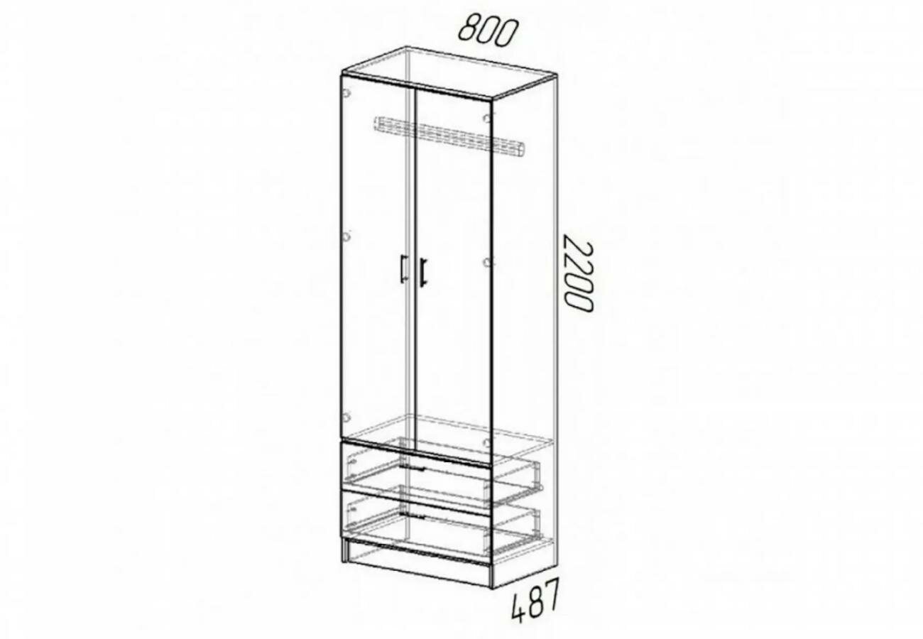 Шкаф Эра Дуэт платяной, ЛДСП, 2 ящика, штанга, 80 х 220 х 48,7 см, ясень шимо ПЭ1049 информация: