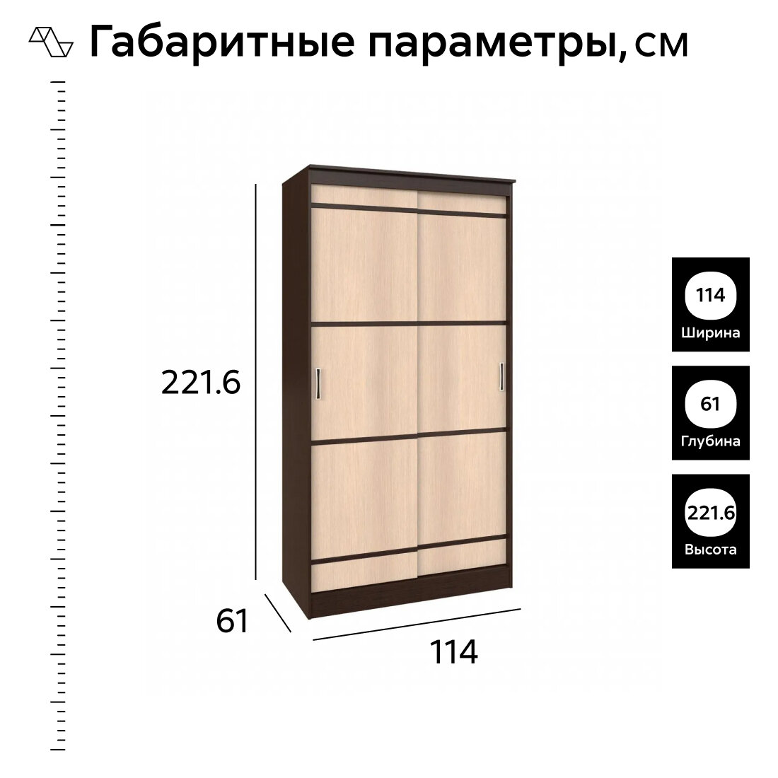 Первый Мебельный Шкаф купе для одежды Сакура двухдверный, 114х61х222 см, с полками, Венге / Лоредо информация: