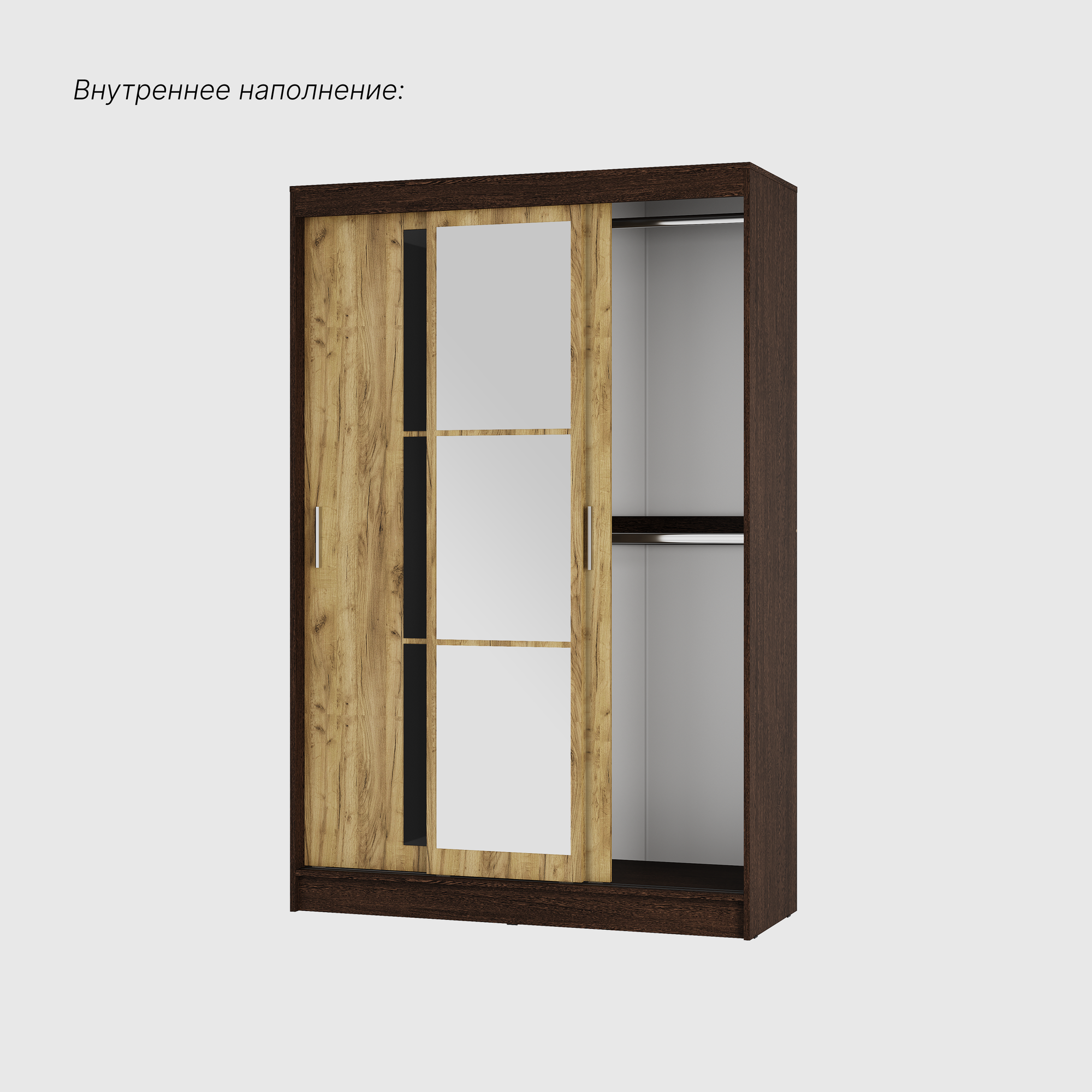 Шкаф-купе для одежды с зеркалом "Денвер" ШКК-03 (венге/крафт) информация: