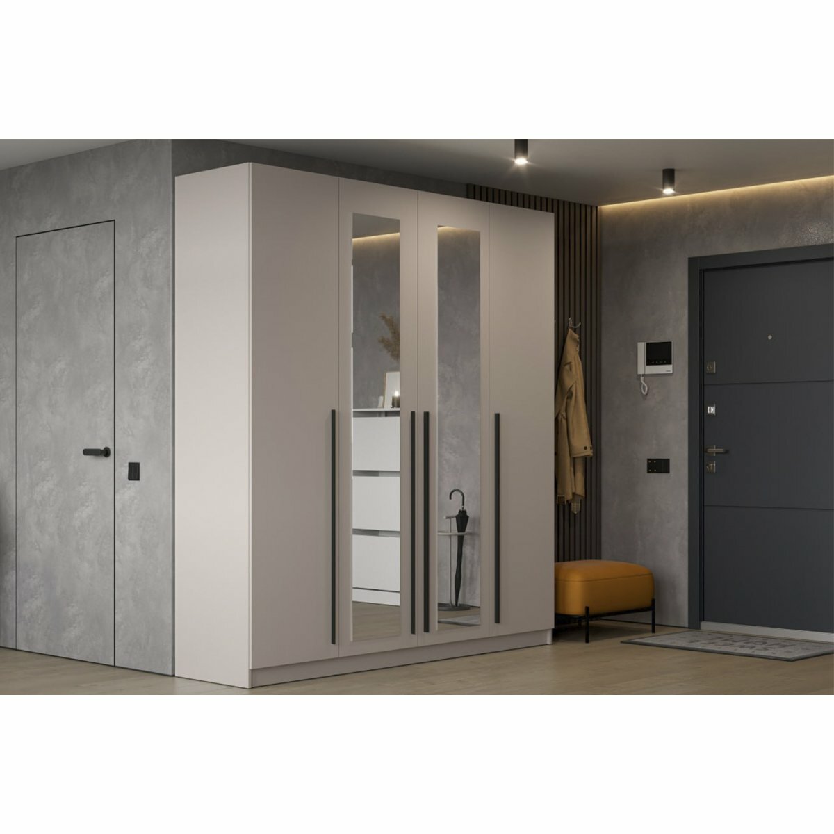 | Особенности | доводчики, модульный, с зеркалом, угловая конструкция, штанга для вешалок |