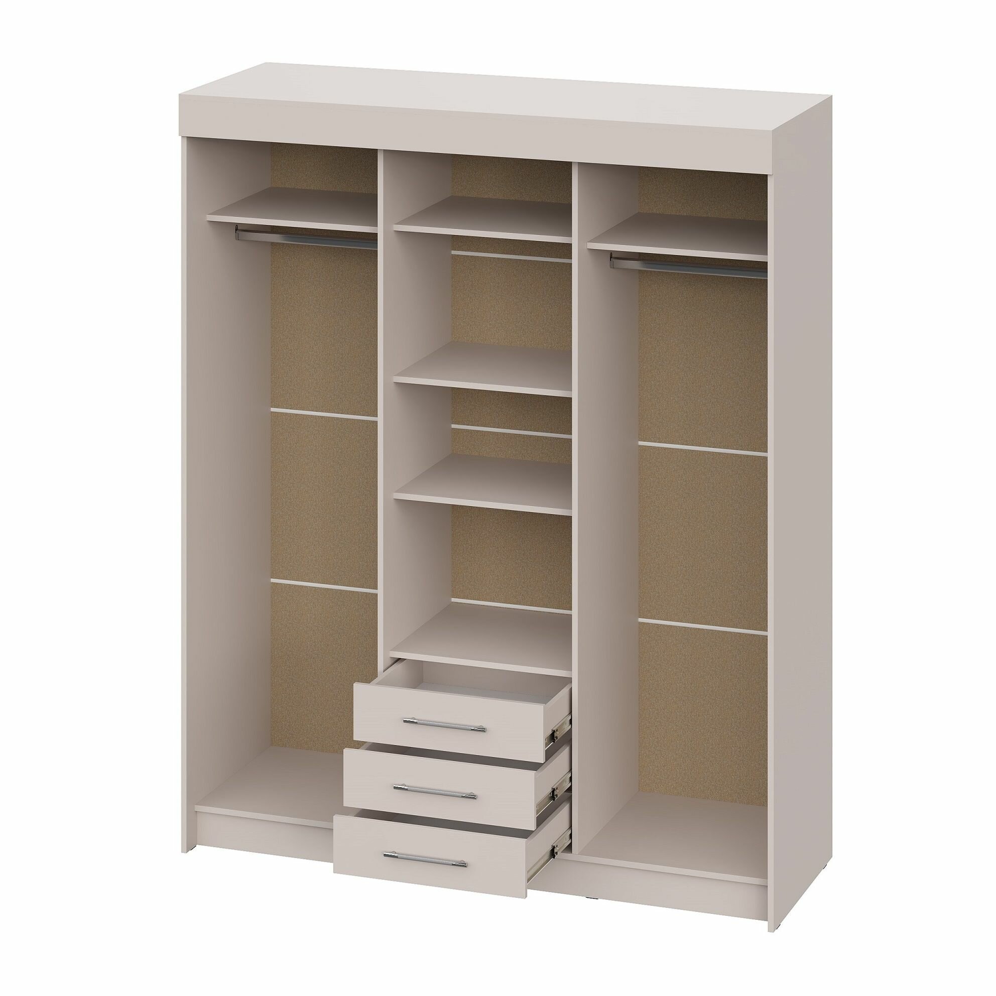 Шкаф распашной МебельЛэнд24 Марсель - 3 Кашемир с антресолью 140x50x270 бежевый для одежды трехдверный