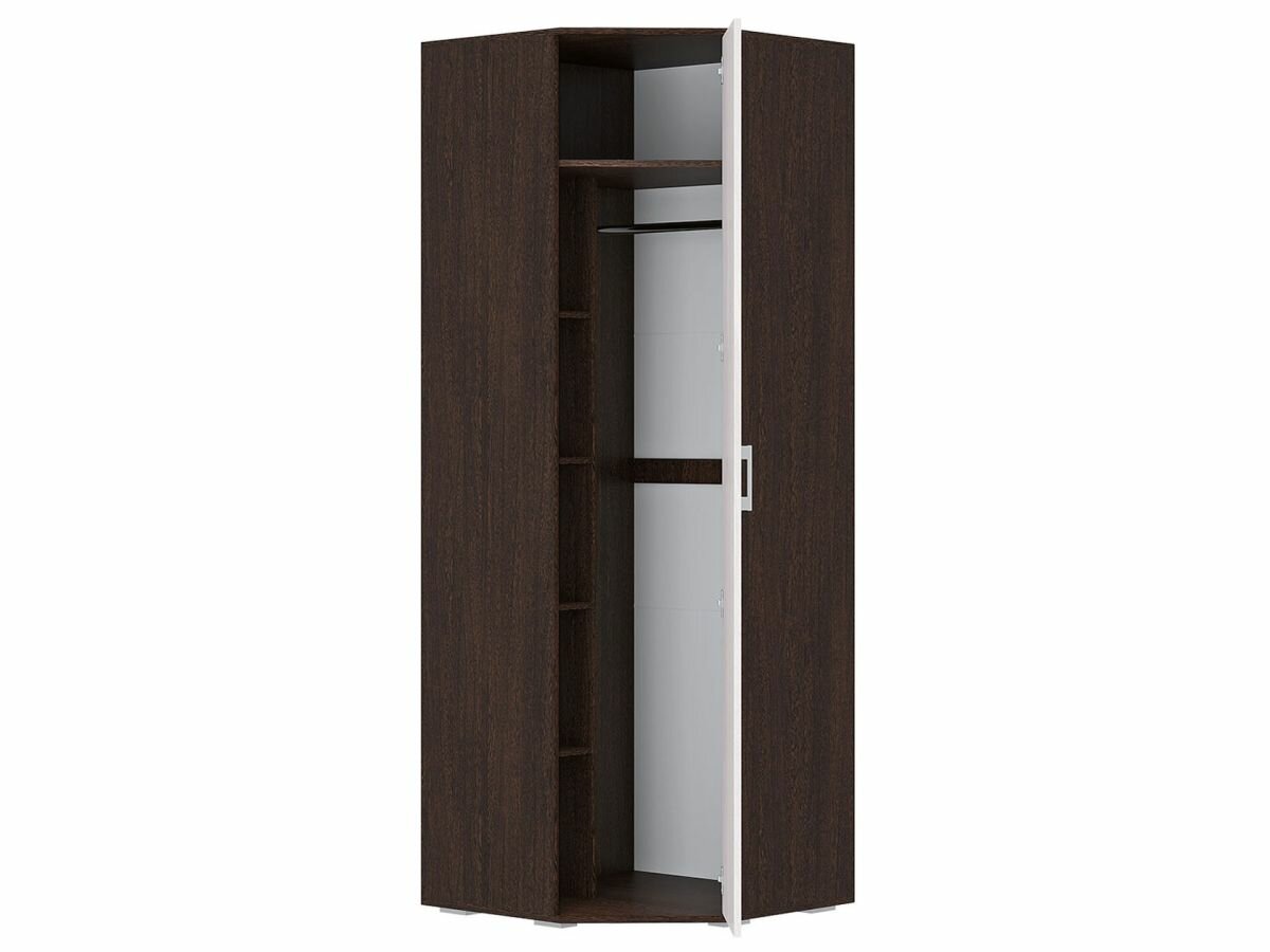 10 цен на Первый Мебельный Распашной шкаф для одежды Белла угловой, с полками, штангой, 75х75х212 см, Венге / Белый ясень