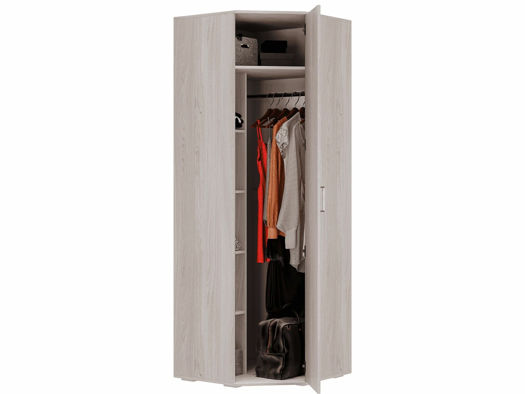 Первый Мебельный Распашной шкаф для одежды Белла угловой, с полками, штангой, 75х75х212 см, Белый ясень информация: