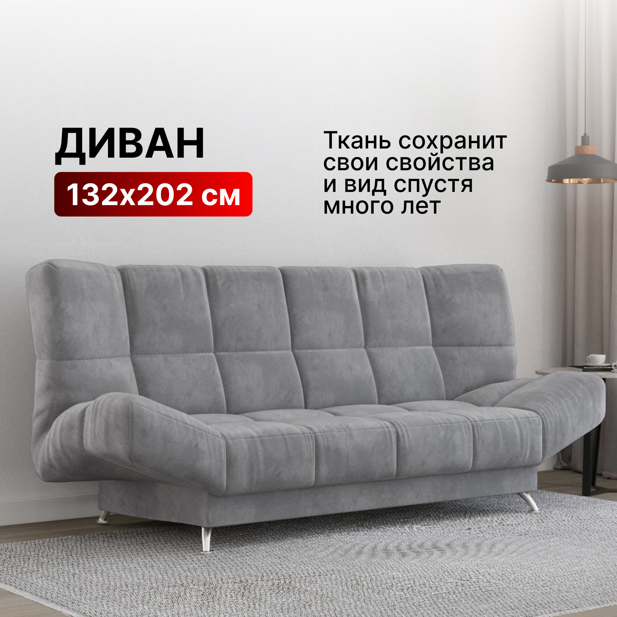 10 цен на Диван-кровать раскладной Прямой, Клик-кляк, Беспружинный, 132х200 спальное место, Палермо, велюр Светло-серый