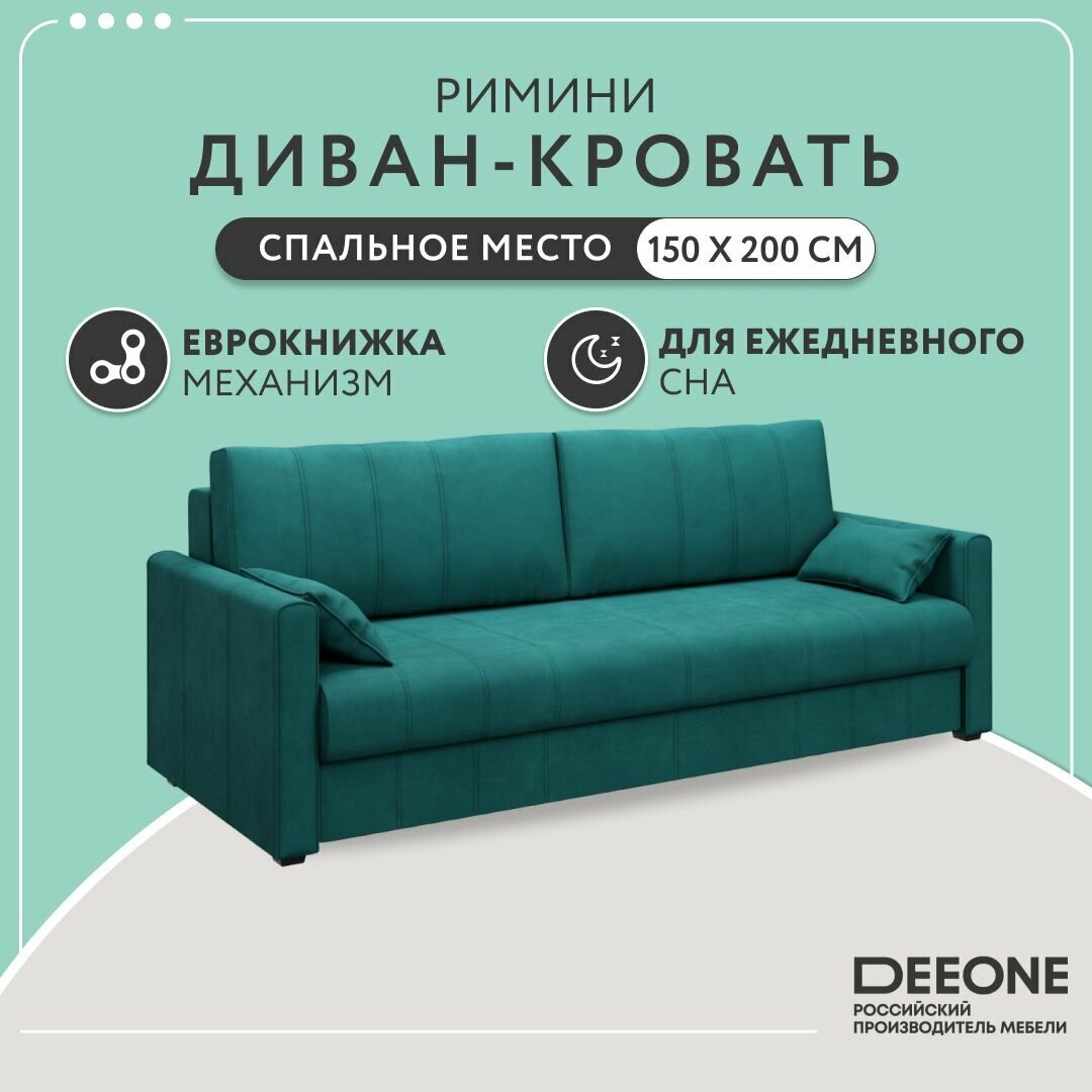 Диван-кровать раскладной прямой Dee One Римини, еврокнижка, велюр, 221х98х90, изумрудный 40 806 ₽
