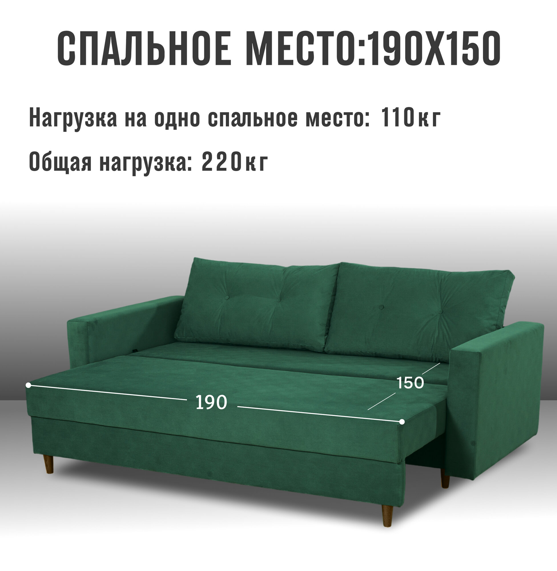 Раскладной диван кровать Киото прямой, механизм еврокнижка, 220х96х85 см, зеленый информация: