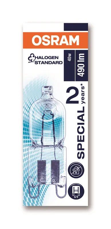 1 шт/уп. Лампа для духовки Галогенная Капсула 40W 220-240V G9 PIN 490Лм 2800К D-14mm L-43mm Диммируемая Свет Теплый белый OSRAM, уп. 1шт информация: