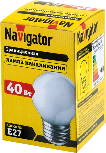 | Дополнительная информация | Лампа накаливания NAVIGATOR 40Вт E27 230В 388Лм 3000К матовый шар |