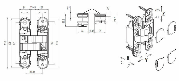 Петля дверная скрытая Koblenz Kubica K1019 DXSX HYBRID универсальная (40/52) черный 2 244 ₽