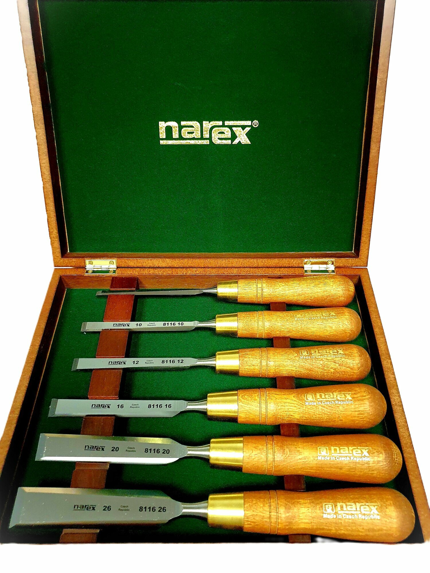 Набор из 6 плоских стамесок NAREX WOOD LINE PLUS (853200) в деревянном кейсе (6,10,12,16,20,26мм) информация:
