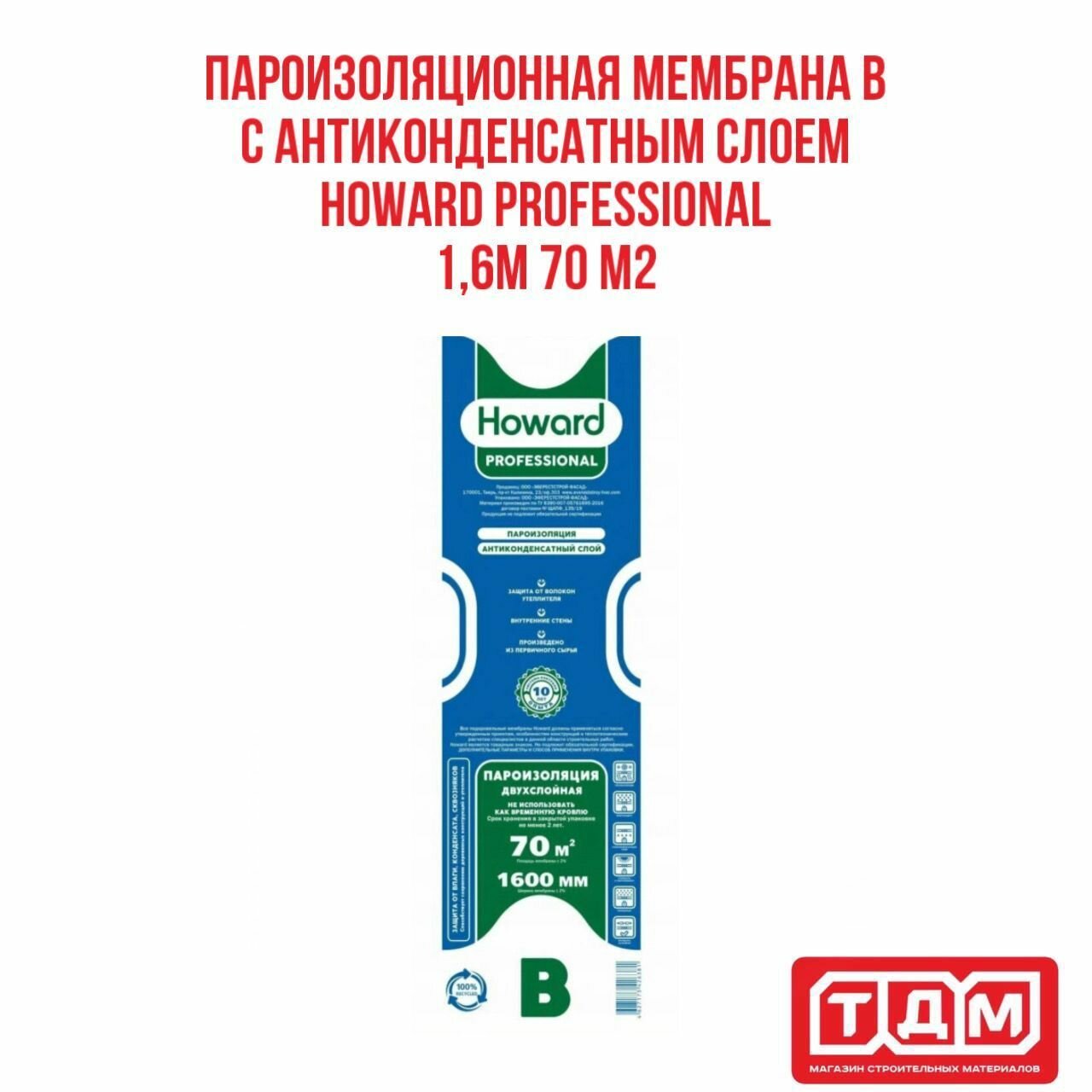 Пароизоляционная мембрана 1,6м 70 м2 B HOWARD Professional информация: