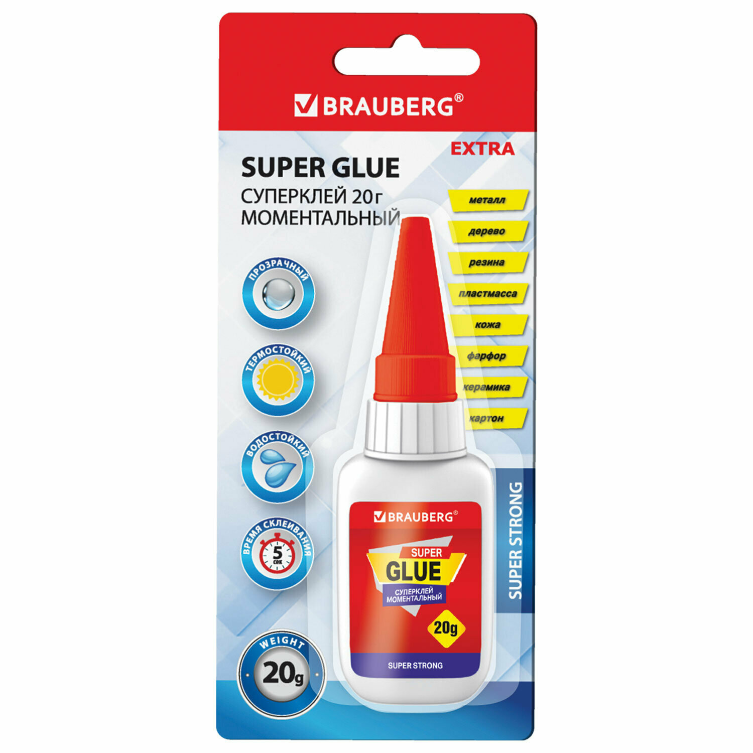 Клей моментальный ультрапрочный суперклей BRAUBERG EXTRA, 20 г, максимальный объем, 608101 информация: