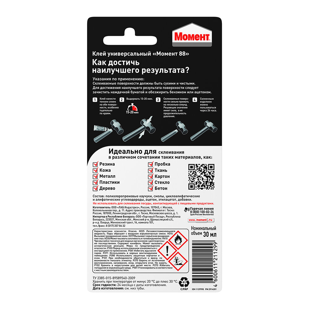 Клей момент особопрочный 88 30мл прозрачный информация: