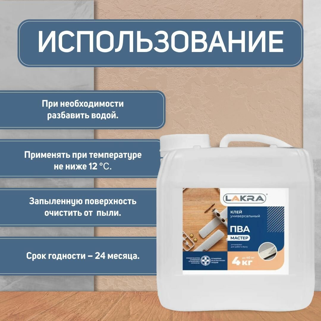 Лакра Клей ПВА универсальный Мастер 4кг информация: