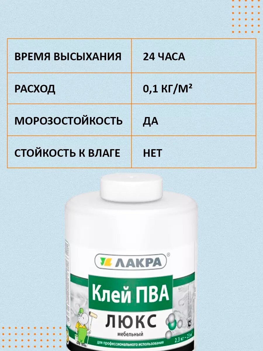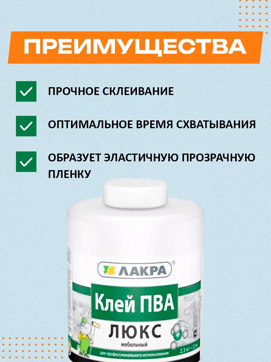 Клей ПВА мебельный Люкс Лакра 2,3кг информация: